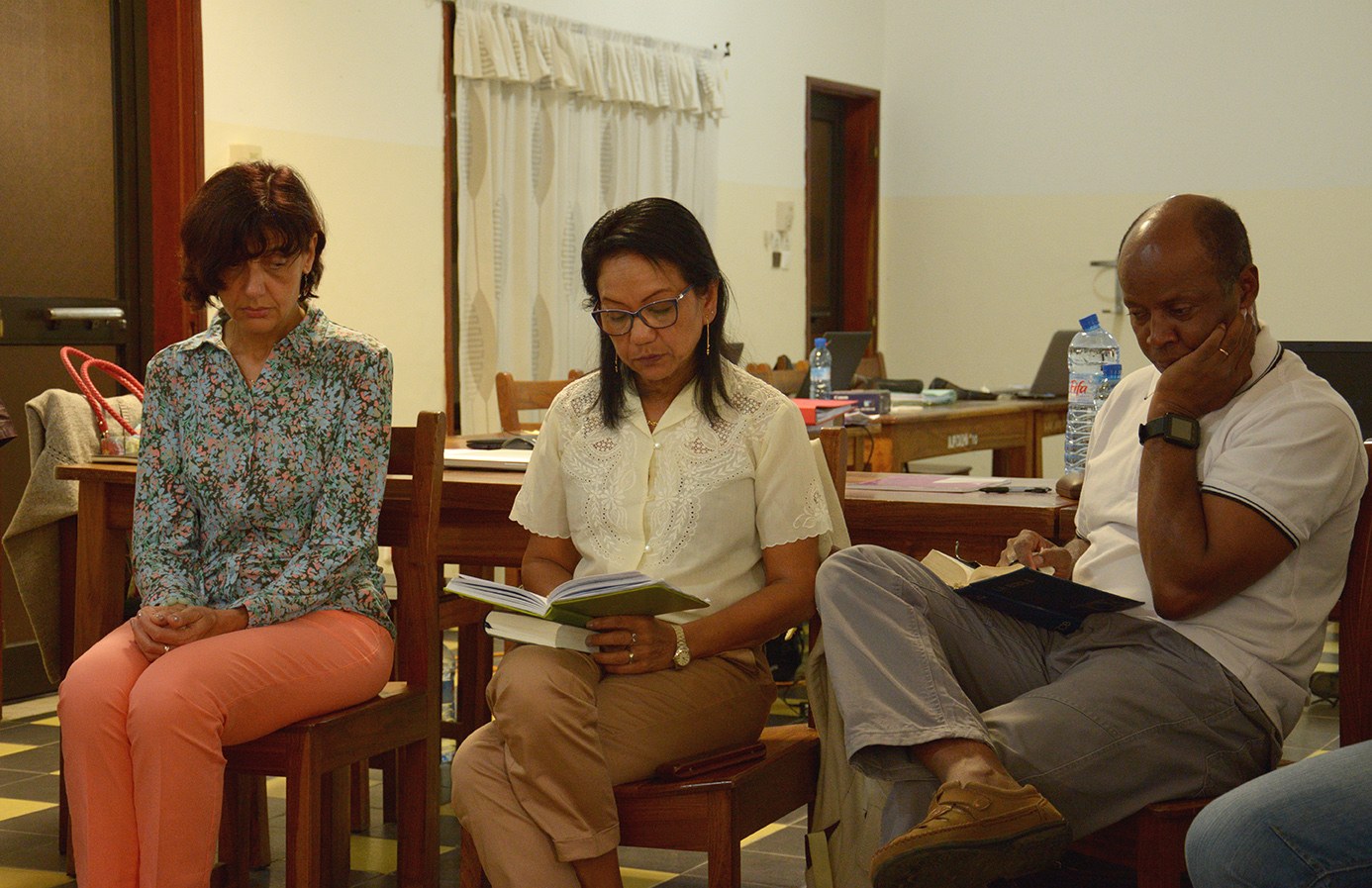 Prière et temps de méditation pour commencer la journée, elle s'est poursuivie avec la lecture des rapports des pôles Animations et Projet / Echange de personnes.